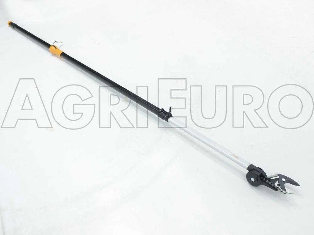 Même dans le cas des arbres feuillus et mal taillés il est possible ainsi de couper des branches d’un diamètre allant jusqu’à un maximum de 32 mm grâce à son manche télescopique qui va de 240 cm à 400 cm de hauteur.