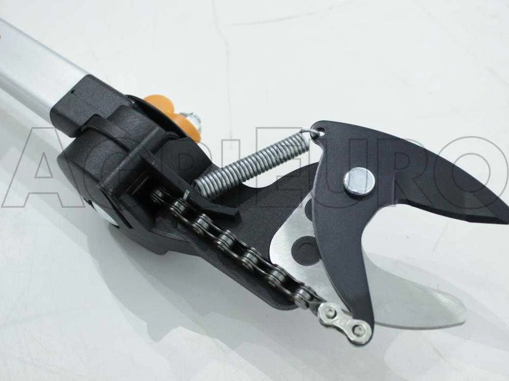 Le système de coupe est activable par le biais de la poignée coulissante le long de la perche. Il suffit de tirer d’une main sur la poignée placée à l’arrière afin d’activer les lames.