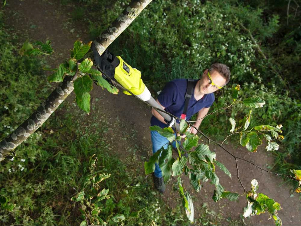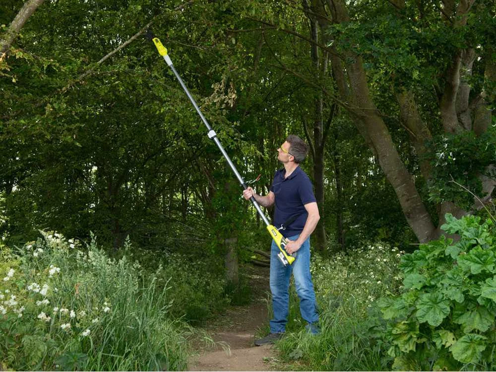 Grâce à sa perche qui va de 1.9 à 2.7 m, il est possible de tailler les branches les plus hautes en restant les pieds sur terre en toute sécurité en évitant les escabeaux et échelles.