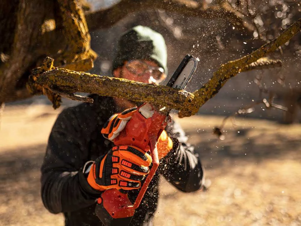 Ce modèle d’élagueuse dispose d’un double interrupteur de sécurité pour éviter le fonctionnement intempestif de la chaîne.
