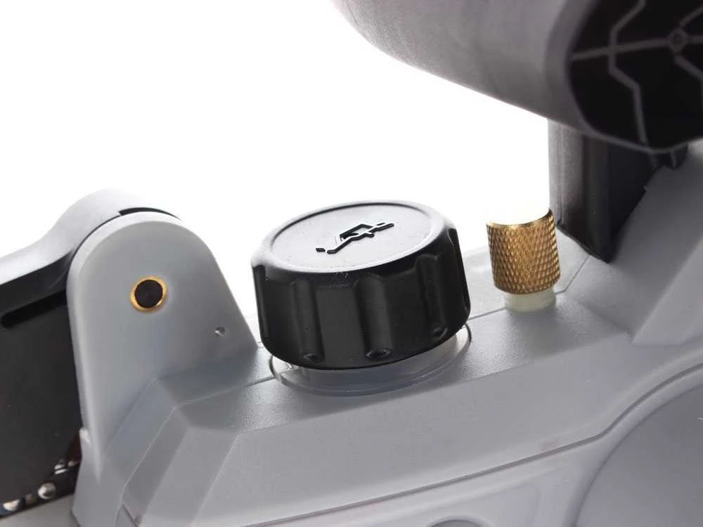 Réservoir de l’huile de chaîne avec indicateur transparent du niveau (permet de visualiser le niveau d’huile pendant l’utilisation).