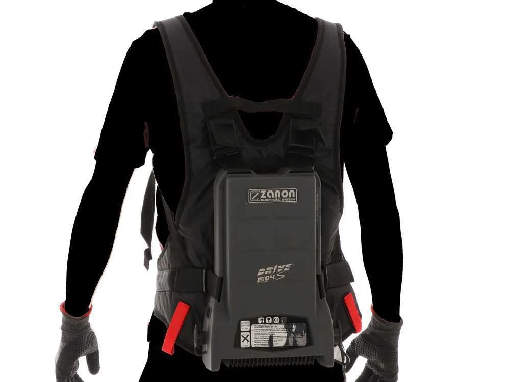 Dans l’emballage vous trouverez aussi une batterie de sac à dos au lithium-ion Zanon de 50,4 volts de 14,5 Ah (Dure trois fois plus longtemps que les batteries normales). Offert : Un adaptateur pratique pour relier les machines compatibles et le transformateur pour recharger la batterie avec le courant de la maison.