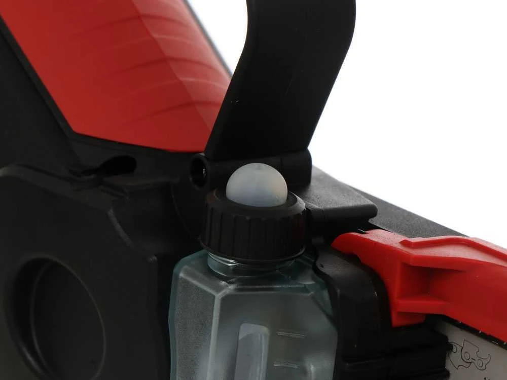 La lubrification de la lame est aisée et possible grâce à la petite pompe manuelle placée près de la barre.