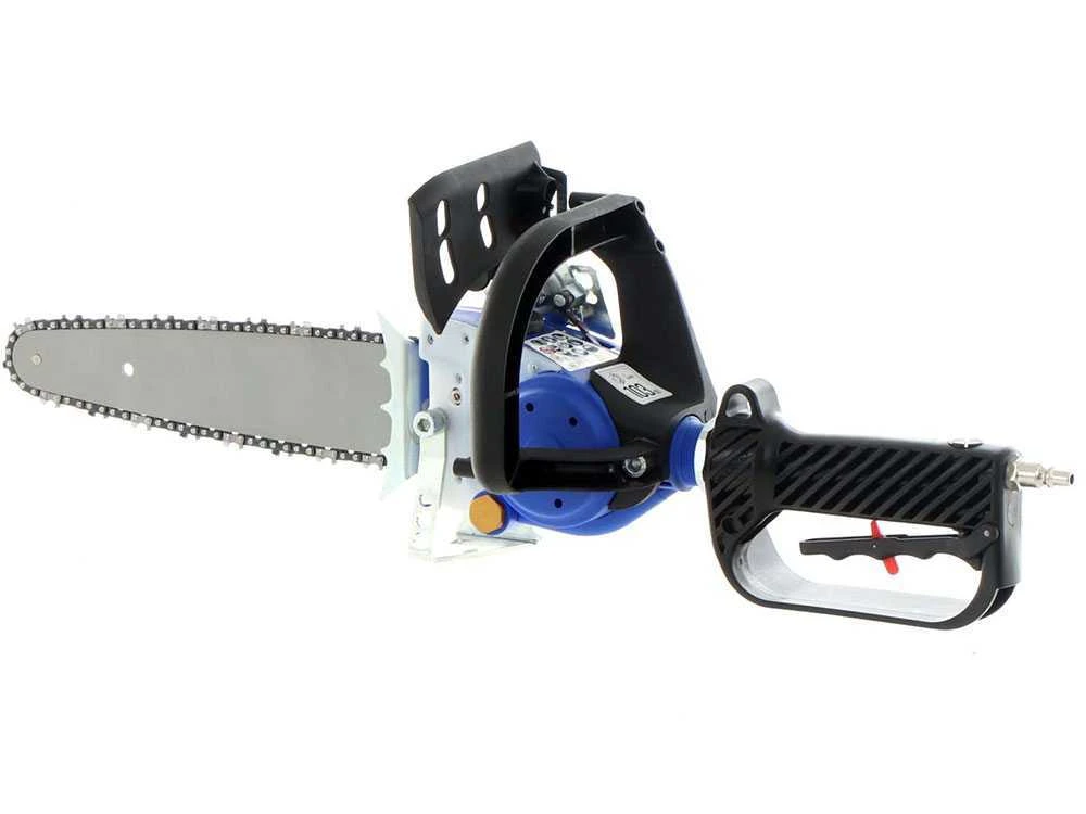 Cette élagueuse pneumatique a été conçue comme une vraie tronçonneuse.