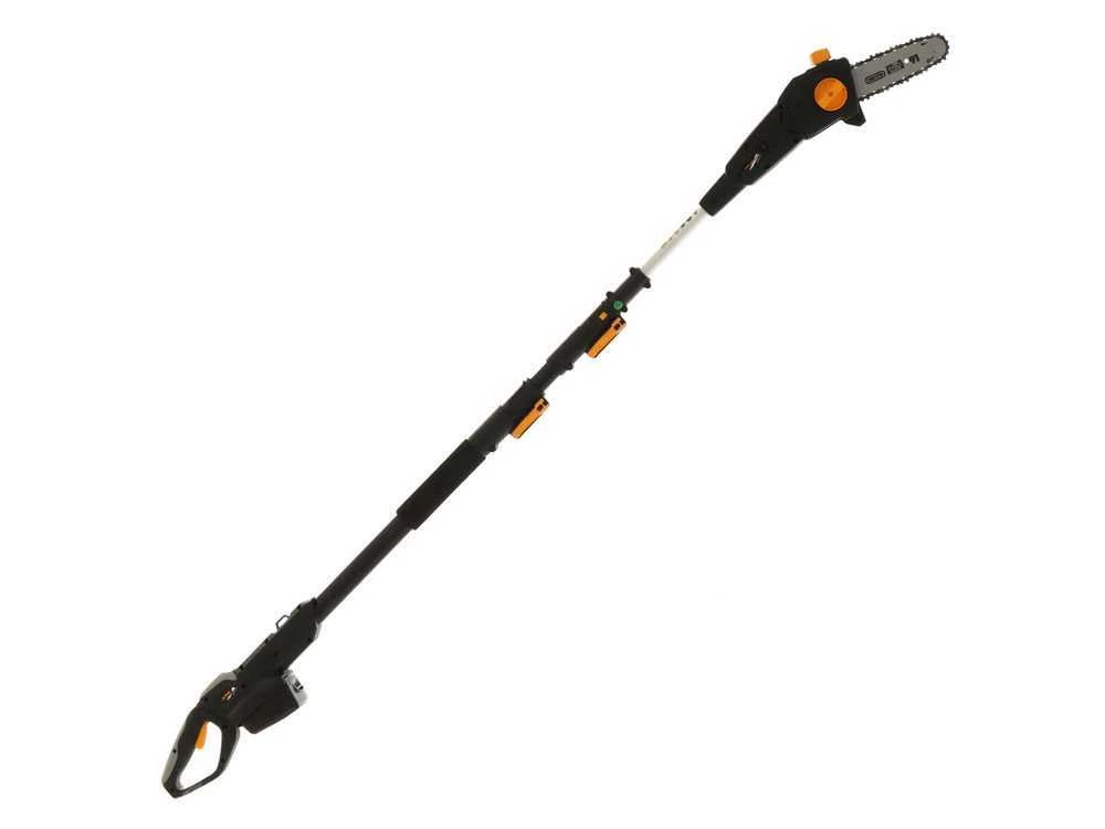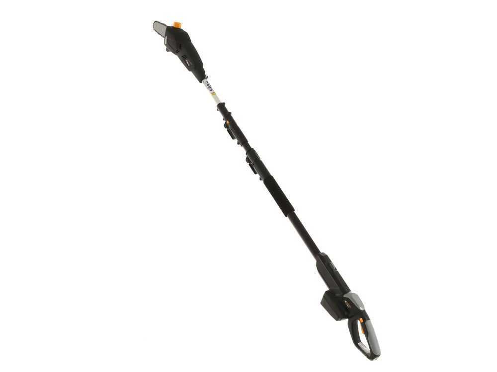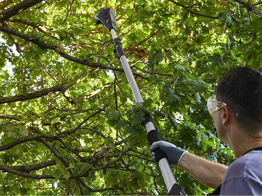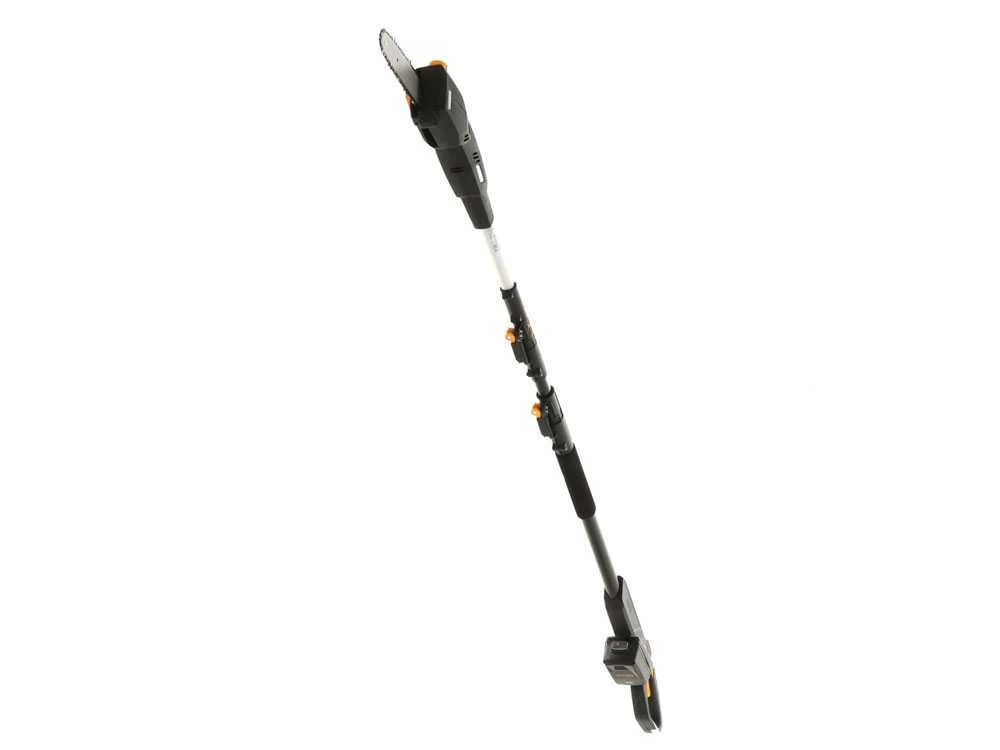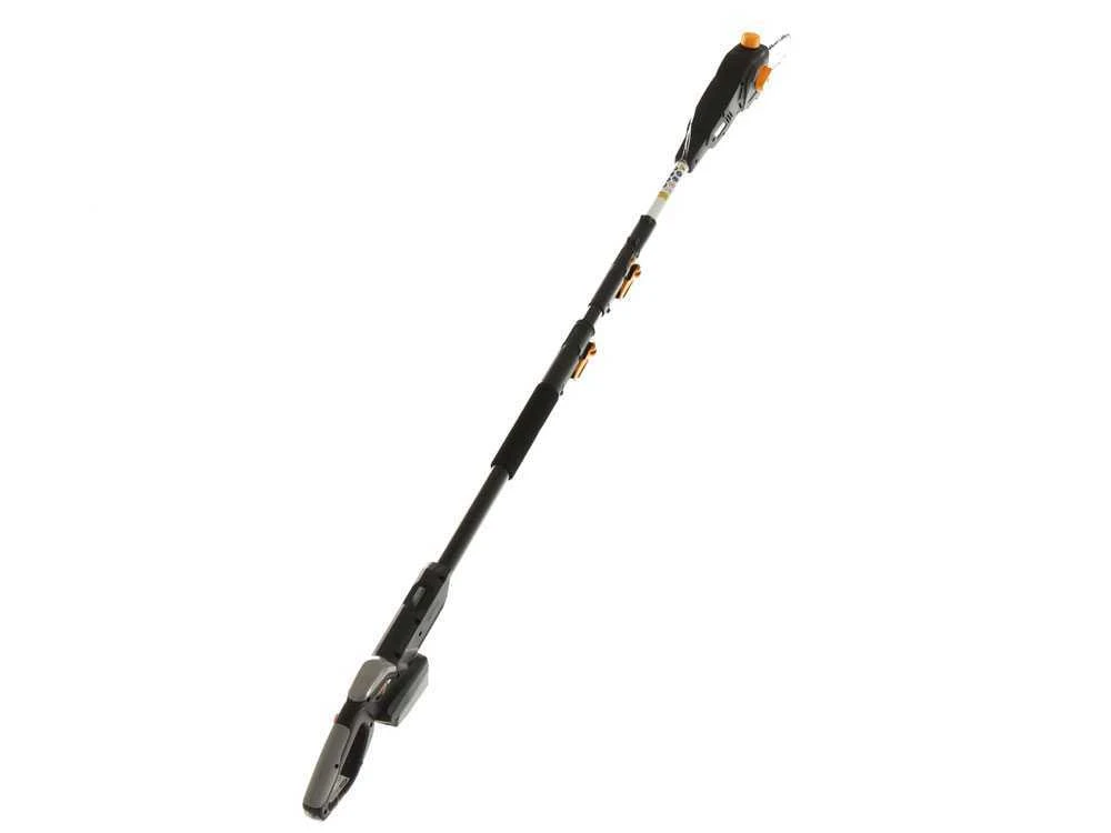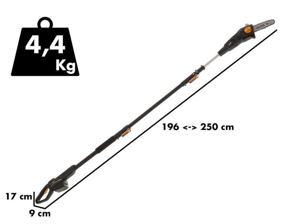 La perche télescopique est longue 120 cm et peut atteindre jusqu’à 175 cm, pour tailler les branches plus hautes, sans devoir recourir à une échelle.