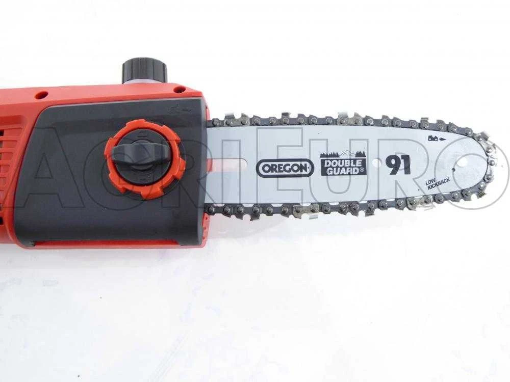 Elle est munie d’un long manche de rallonge télescopique qui s’allonge de 2,2 à 3,2 mètres, qui permet la taille d’arbres même élevés.