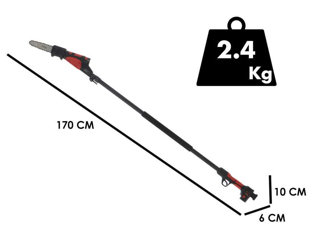 La perche du taille-haie est télescopique et permet une extension maximale jusqu’à 240 cm, et une extension minimale de 170 cm, sans avoir besoin d’échelles ou d’échafaudages.