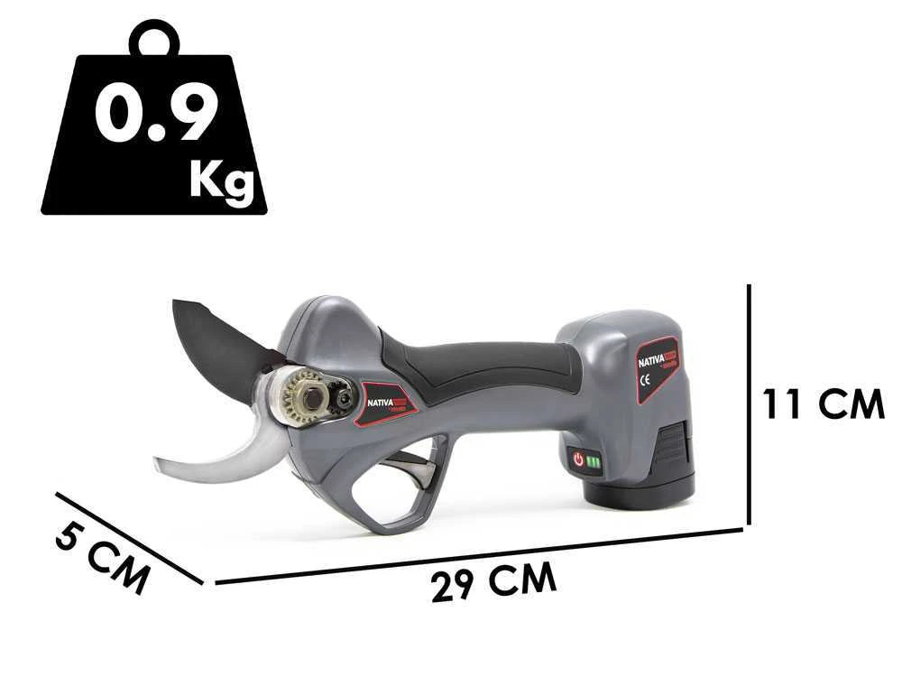Il dispose d’un déclencheur qui garantit une réponse rapide à la coupe, conçu pour couper les vignes, il est également très utile pour le jardinage professionnel et pour couper les branches d’arbres fruitiers. Une autre caractéristique importante est sa batterie à dégagement rapide, batterie également compatible avec la lieuse Nativa TY, de sorte que les batteries sont interchangeables et peuvent être utilisées sur les deux produits de la série. NATIVA .