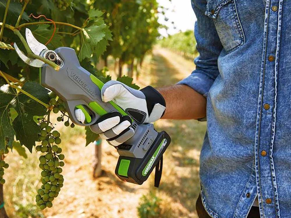 La nouvelle génération de sécateurs à batterie au lithium Verdemax pour couper sans effort.