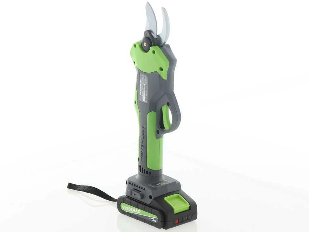 Le sécateur de jardin à batterie Verdemax FE20 est conçu pour exiger moins d’effort et pour fournir une plus grande efficacité. Avec un poids de seulement 1,2 kg, il est recommandé pour la taille des arbres fruitiers, des arbustes et des vignes.