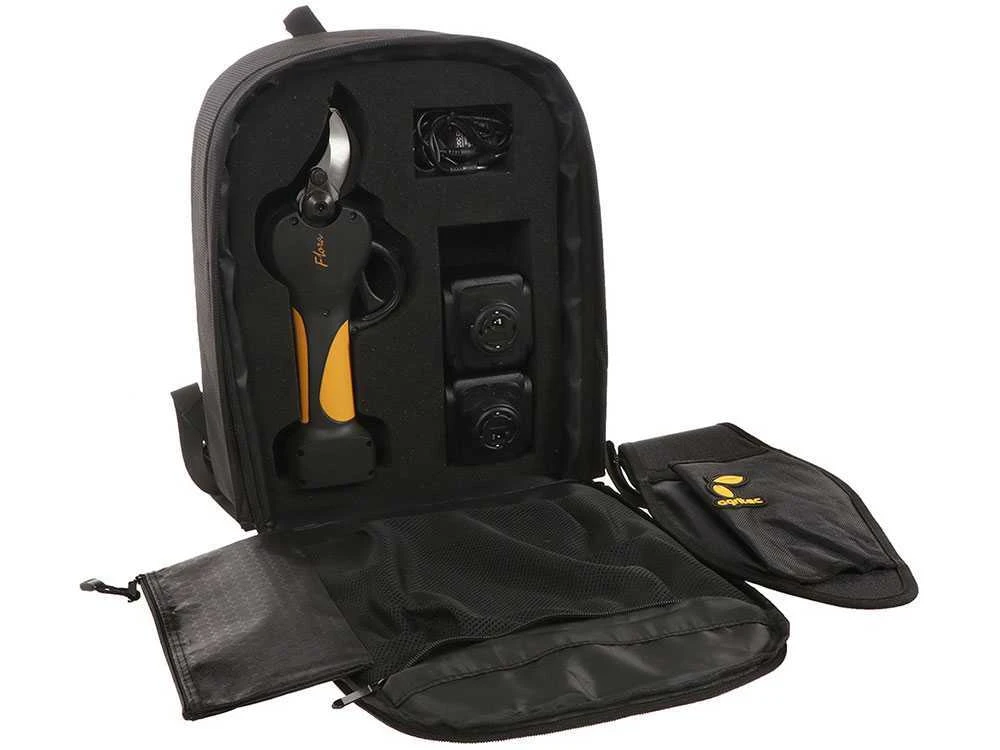 Dans l’emballage du sécateur de taille électrique Agritec FLORA PC38, vous trouverez 2 batteries au lithium polymère de 21,6 V de 2,5 Ah compactes et avec une coque légère en plastique résistant.