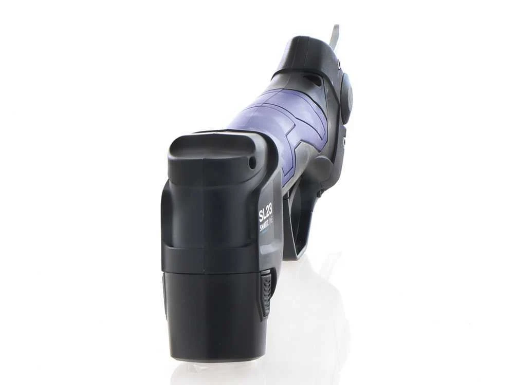Le sécateur SL23 a un poids réduit et une poignée ergonomique qui ne gêne pas l’opérateur pendant les opérations de coupe. Un grand équilibre est apporté dans le sécateur grâce à une répartition parfaite des différents poids (le sécateur ne pèse que 660g tandis que la batterie pèse 100g, pour un total de 760g)