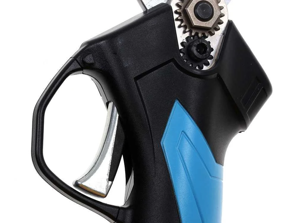 Dans un contexte plus technique, les sécateurs électriques se distinguent surtout par leur système d’interruption automatique durant la coupe, ou bien, si le sécateur rencontre une branche d’un diamètre légèrement plus grand, le sécateur réouvre immédiatement les lames et d’une deuxième coupe il réussira à couper d’un trait cette branche.