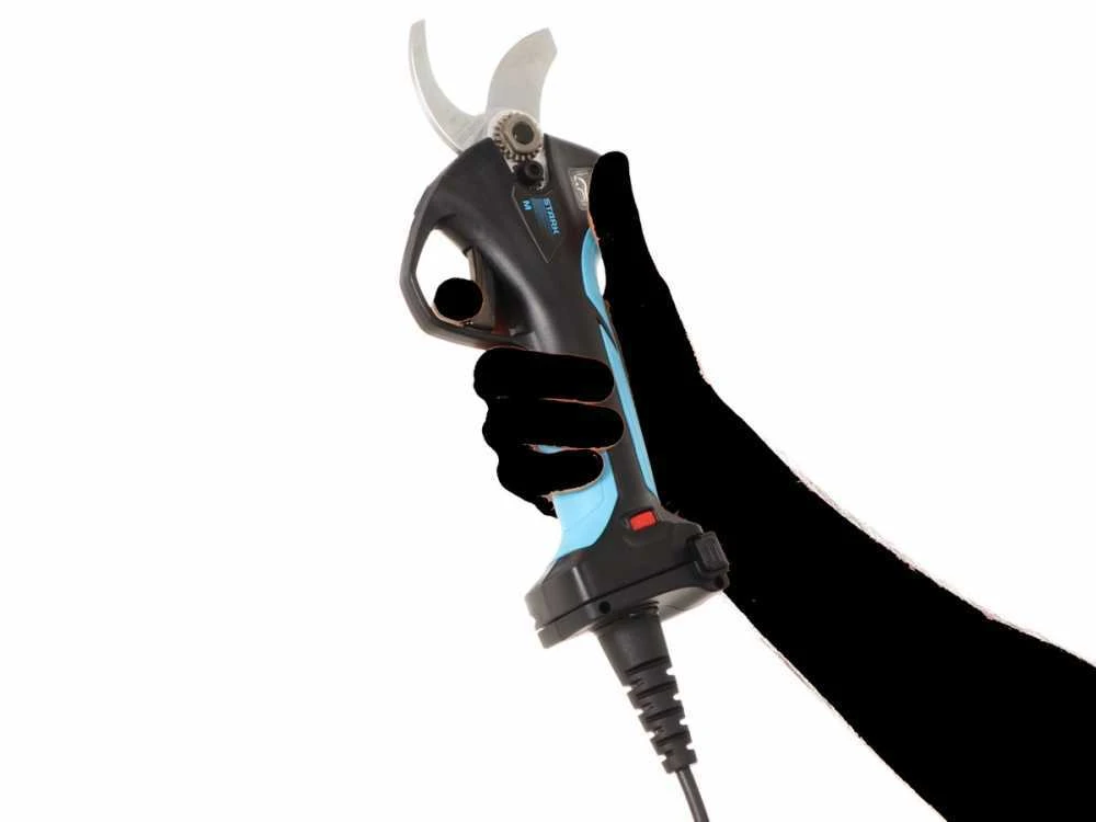 Le câble fourni permet à l’opérateur de garder la batterie dans un étui pratique afin de diminuer le poids de la batterie. Ceci permet à l’opérateur d’utiliser le sécateur avec une plus grande facilité, ce qui permet une utilisation prolongée sans fatiguer l’utilisateur.