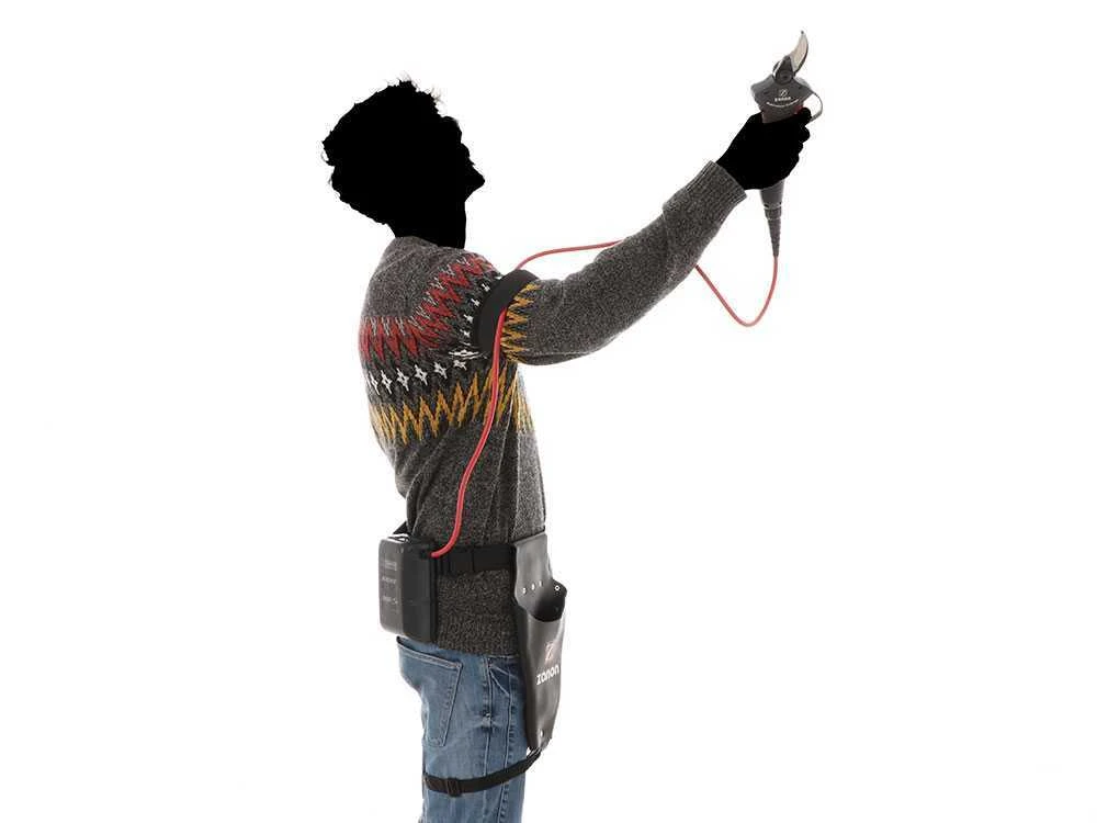 Le Zanon SL 38 est équipé d’une batterie au lithium, qui peut être attachée à une ceinture spéciale fournie. Cela permet d’avoir une grande maniabilité du sécateur et une grande liberté de mouvements.