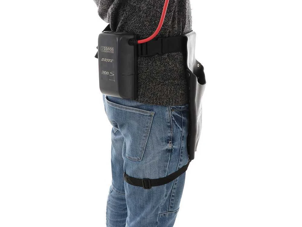 Batterie avec attache rapide à la ceinture, avec réglages visibles.