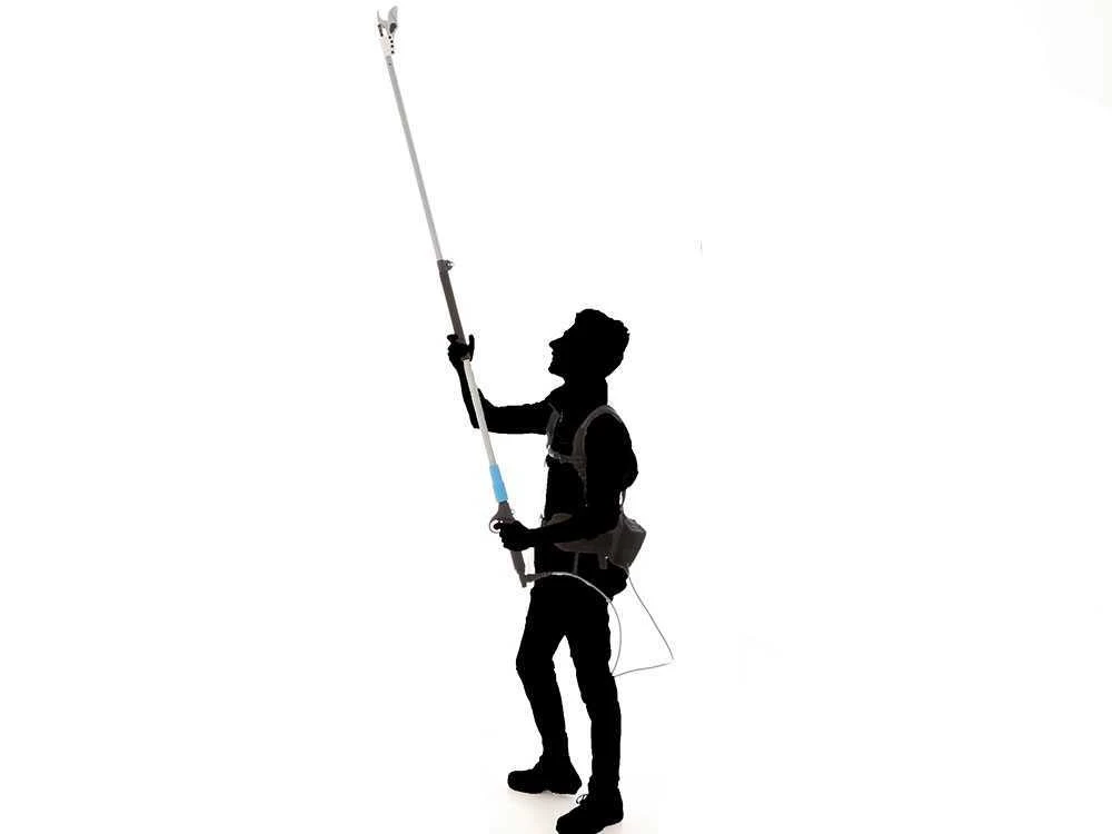 Sécateur sur perche, d’environ 200 cm d’extension pour des travaux à hauteur élevée.