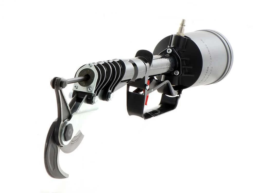 Le sécateur est activé en appuyant sur le levier, après avoir déverrouillé le dispositif de sécurité de la paume. L’énergie d’entraînement est fournie par l’air comprimé et envoyée à l’entrée d’air à travers les tuyaux.