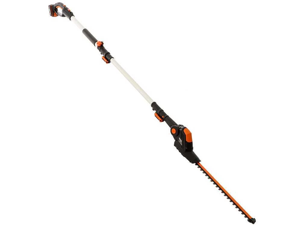 Le taille-haie couvre une hauteur de 3.2 m, mais peut être désassemblé avec une simple manette afin d’occuper moins d’espace lors du transport ou du rangement.