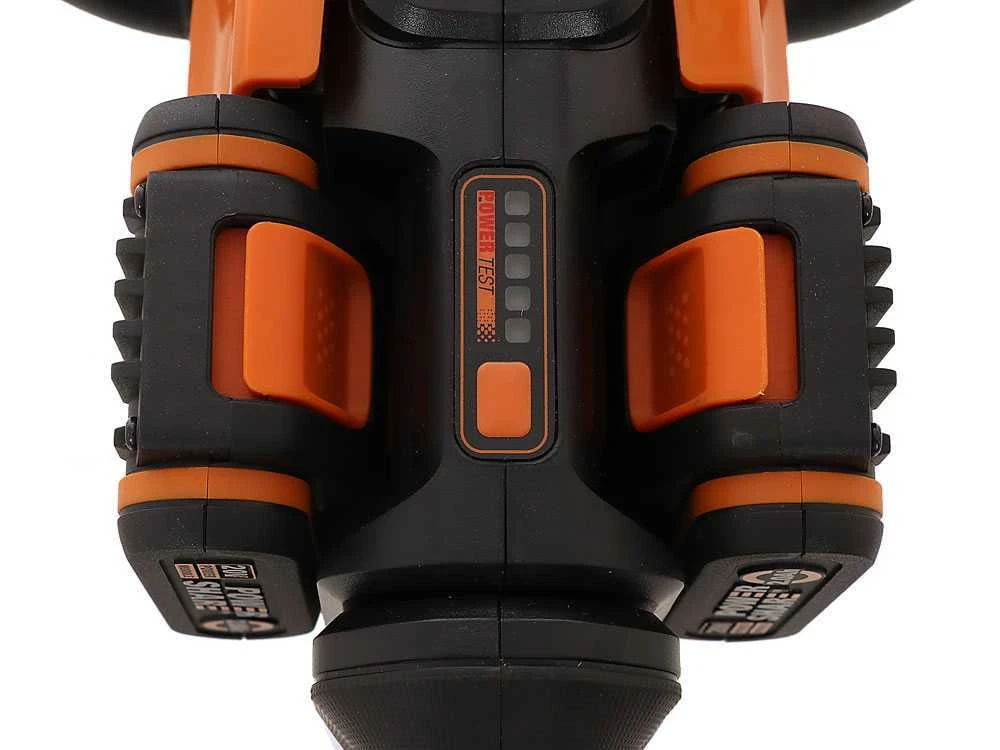 La batterie de 40V (2 x 20V) WORX au lithium-ion peut être rechargée à tout moment (comme pour les batteries des smartphones actuels pas d’effet mémoire) afin de pouvoir la trouver prête à l’emploi dès que vous le souhaitez. La durée de charge est environ 3 fois supérieure à une batterie normale. Elle est dotée d’un indicateur pour le niveau de charge.