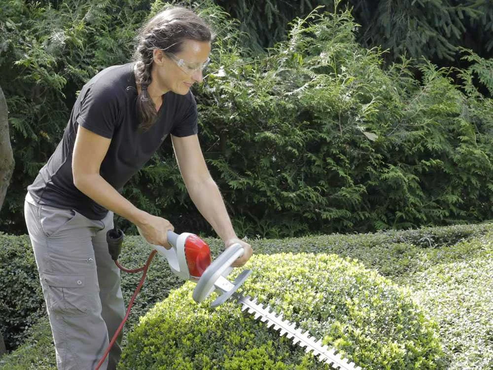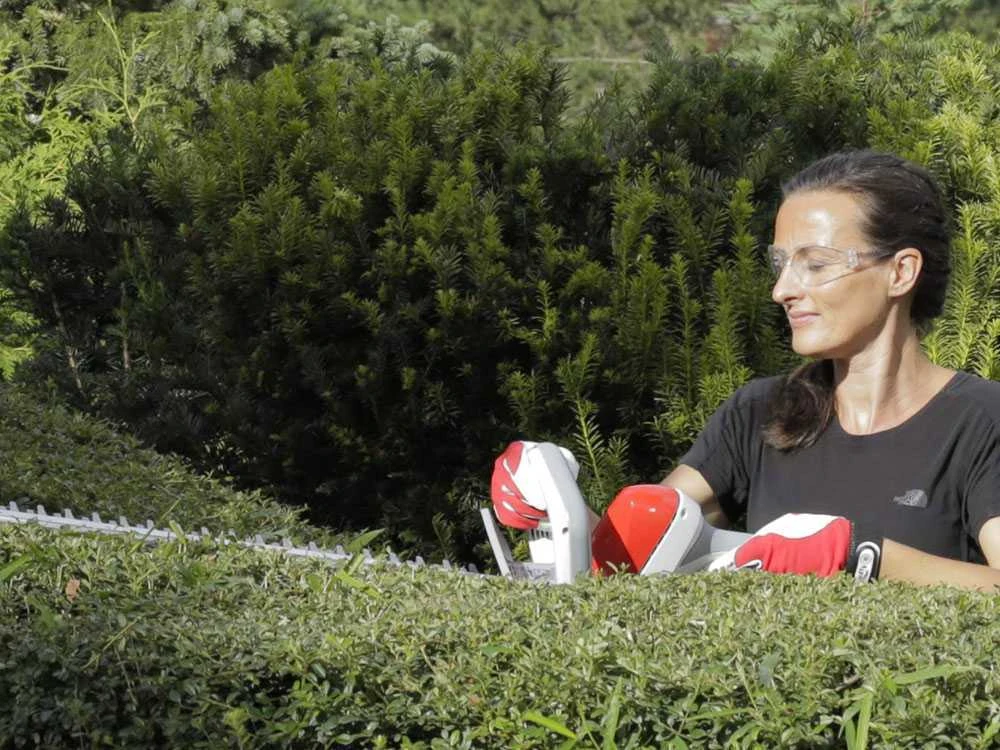 - Beaucoup plus léger. Malgré sa robuste transmission il ne pèse que 3 kg, contrairement à la moyenne de 6 kg d’un taille-haie équipé d’un moteur thermique (ce qui demande plus d’eefort durant l’utilisation).