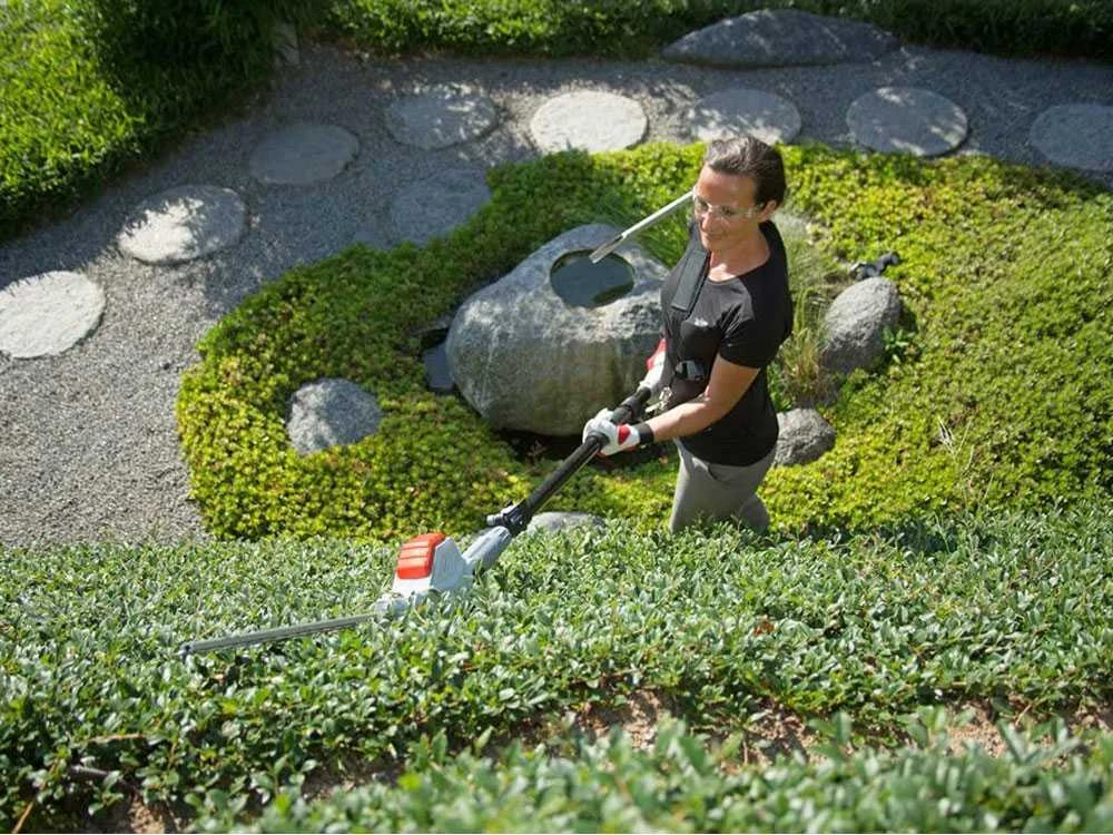 Grâce au harnais réglable et à son poids léger (5 Kg) ce taille-haie permet de travailler de manière confortable.