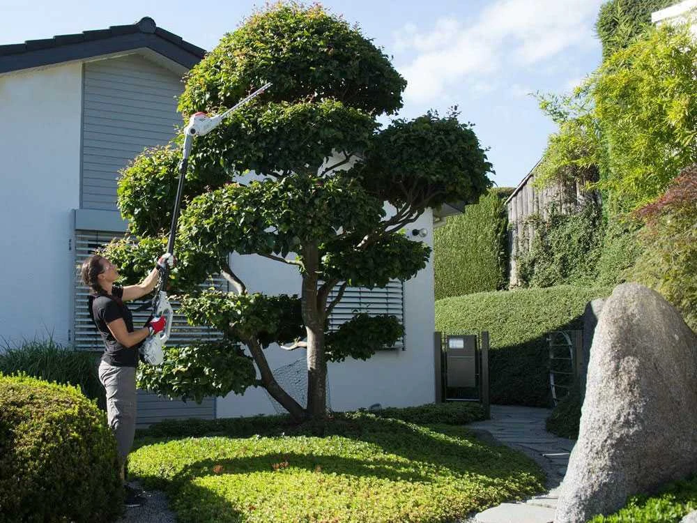 Le taille-haie à batterie IKRA IATHS 40/43 est utile pour la coupe des branches jusqu’à 4 mètres de hauteur.