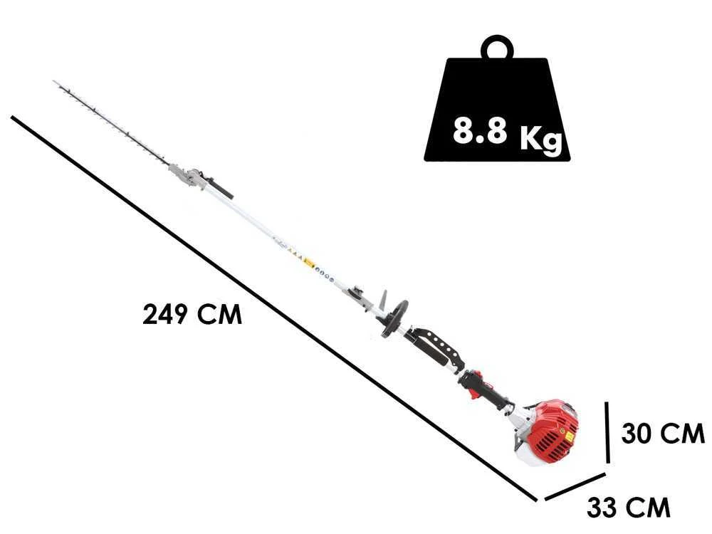 Le taille-haie avec perche de 28 mm peut atteindre 2,5 m de hauteur de travail, grâce à la longueur totale de 250 cm.