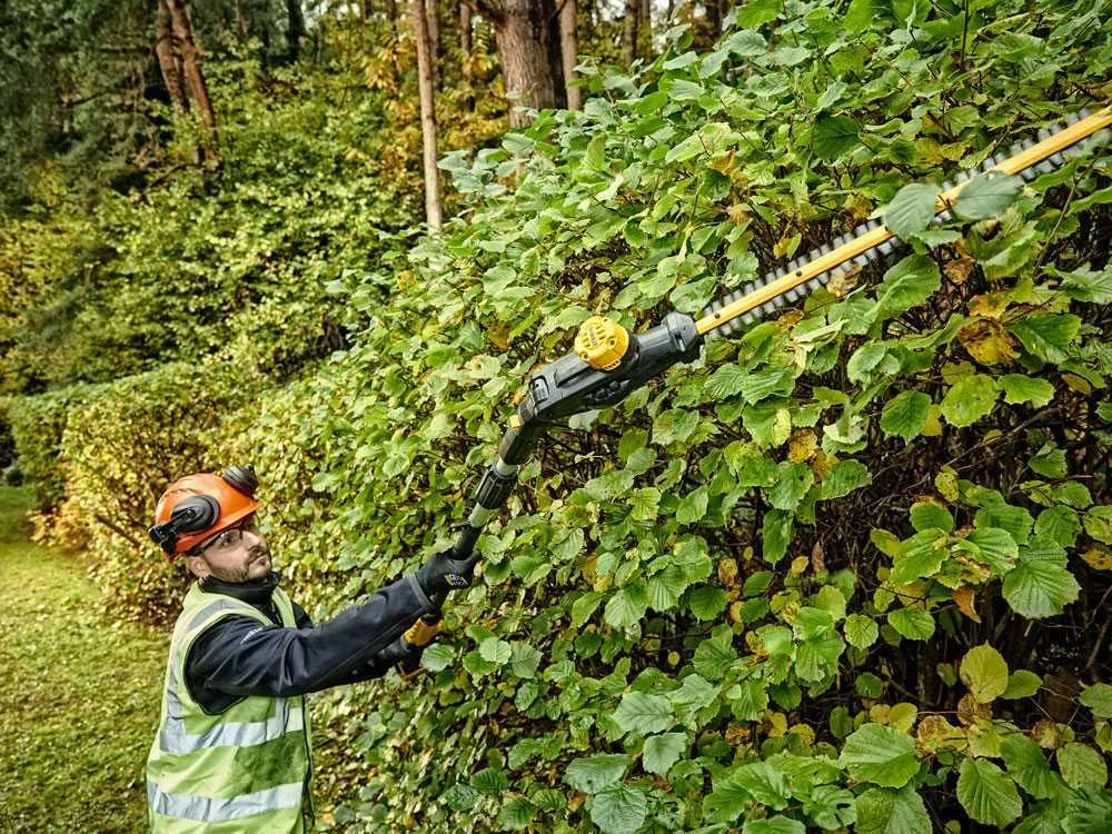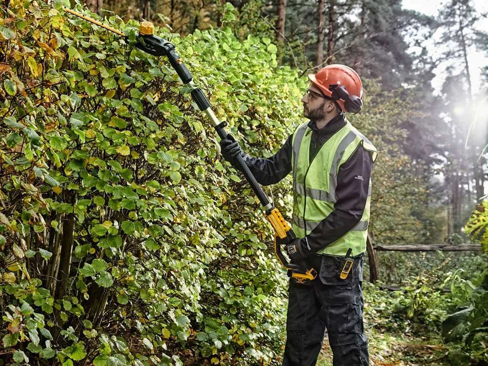 Adapté pour l’entretien des petits espaces verts, ce taille-haies n’a pas besoin de carburant ou de câbles mais est alimenté par des batteries 18V DeWalt.
