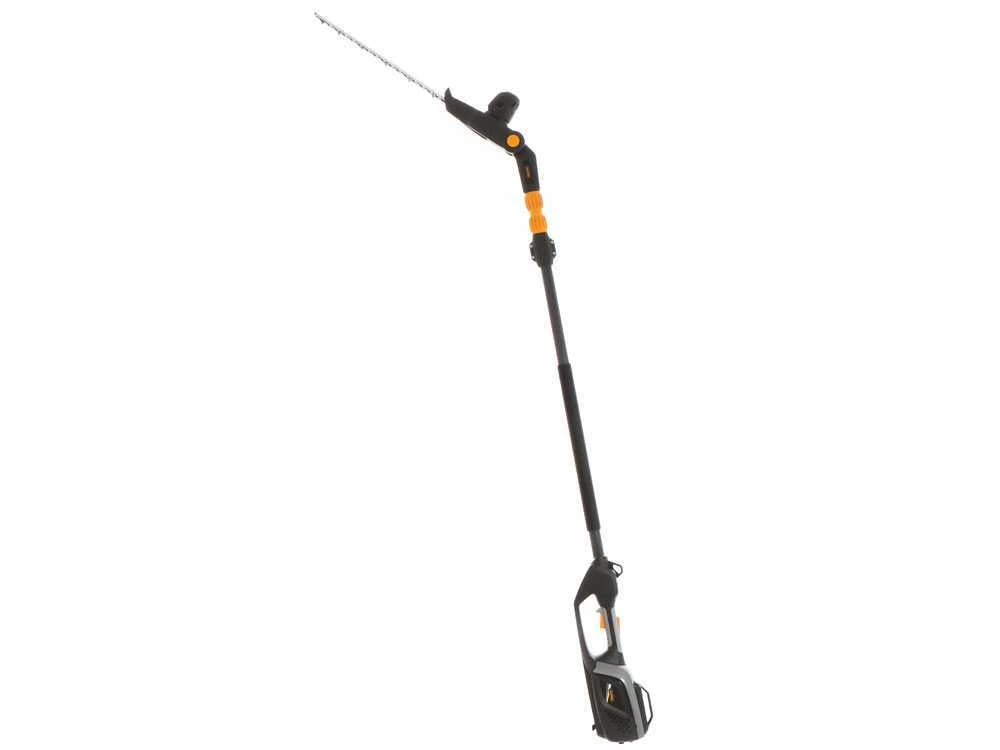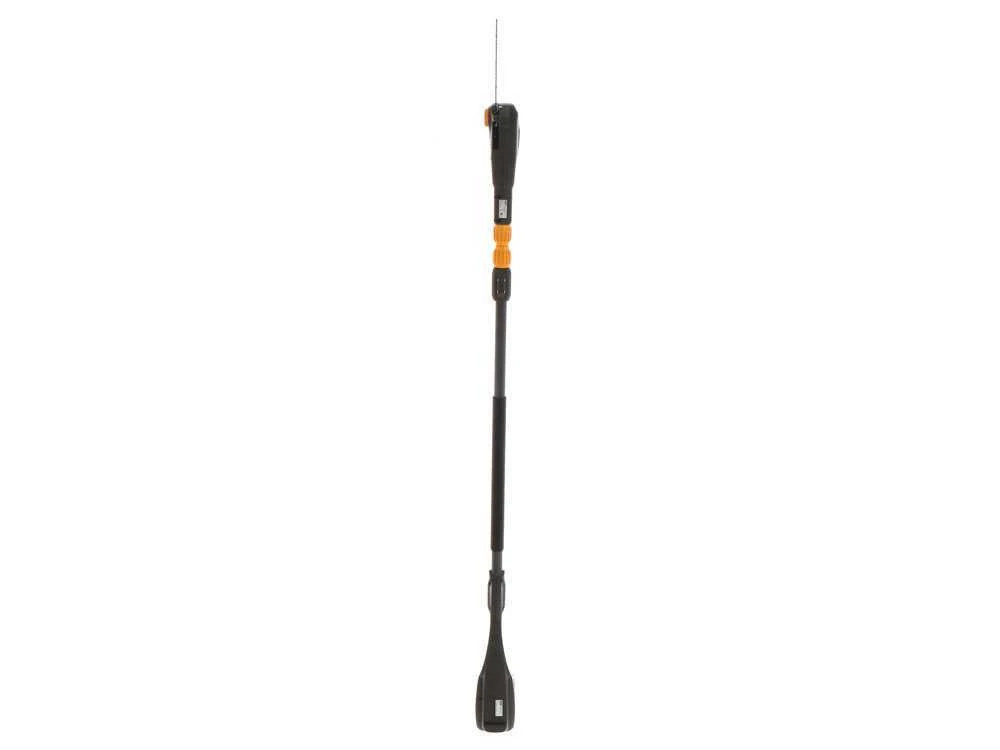 Produit multifonctions qui comprend un taille-haies et une perche élagueuse alimentés par batterie. Perche en fibre de verre qui aide à contenir le poids de l’instrument. Il est équipé d’une perche télescopique de 65 cm.