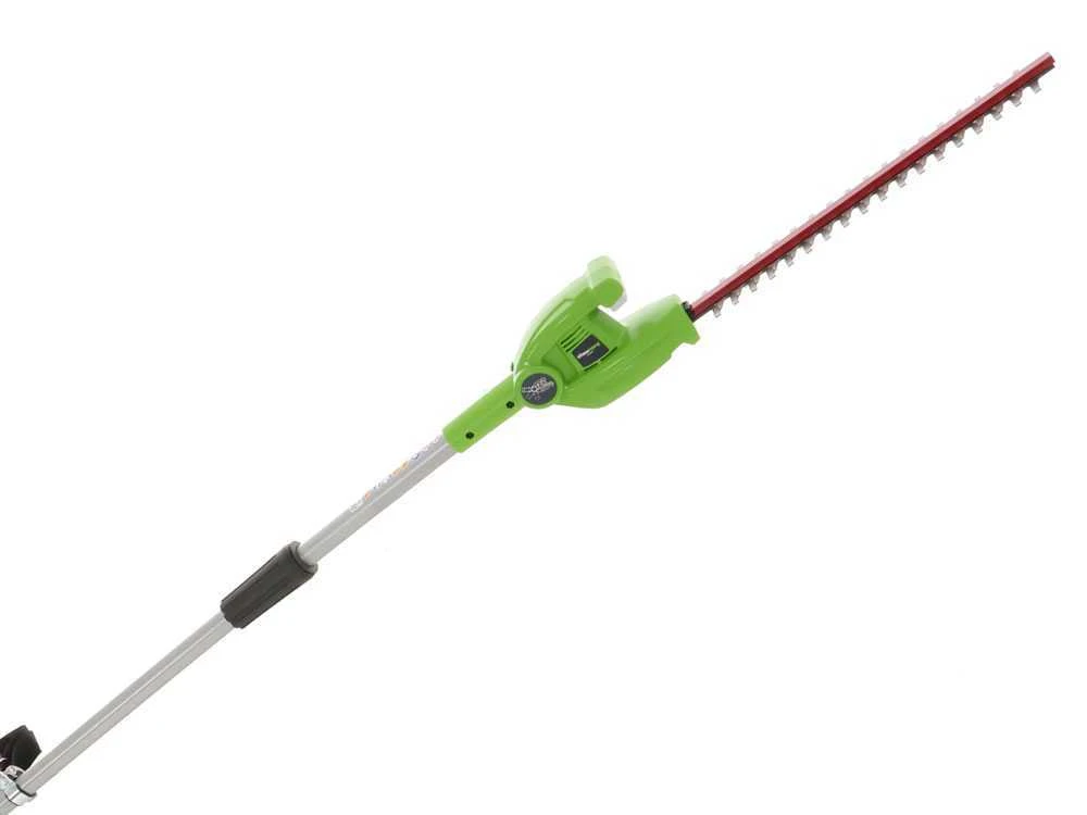 La partie supérieure du produit est interchangeable, de manière à pouvoir l’utiliser en taille-haies ou en élagueuse.