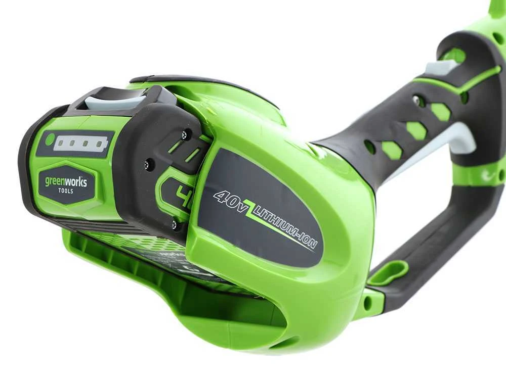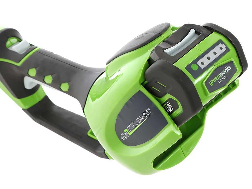Ce taille-haies est alimenté par un moteur électrique à batterie universel Greenworks 40V. La légèreté, par rapport aux moteurs thermiques, permet d’avoir un produit plus équilibré et facile à manipuler. Il y a d’autres avantages liés au choix d’un moteur électrique :