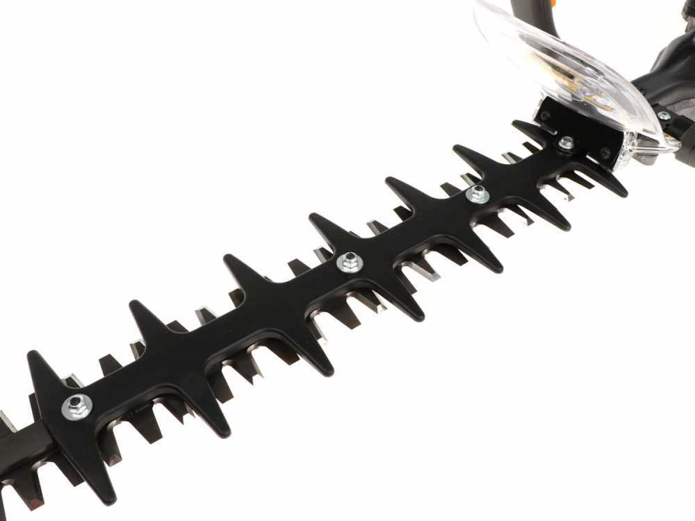 La lame diamantée est conçue pour améliorer la précision de coupe. En outre, ce taille-haies incorpore une double lame à coupe réciproque de 2,5 mm d’épaisseur à 3 pointes.